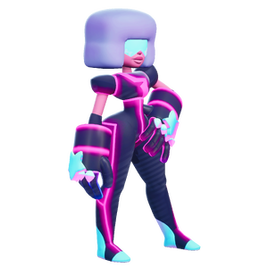 Circuit Drone Garnet is an original Variant giving Garnet a primarily dark blue color scheme with glowing neon highlights that periodically change color.