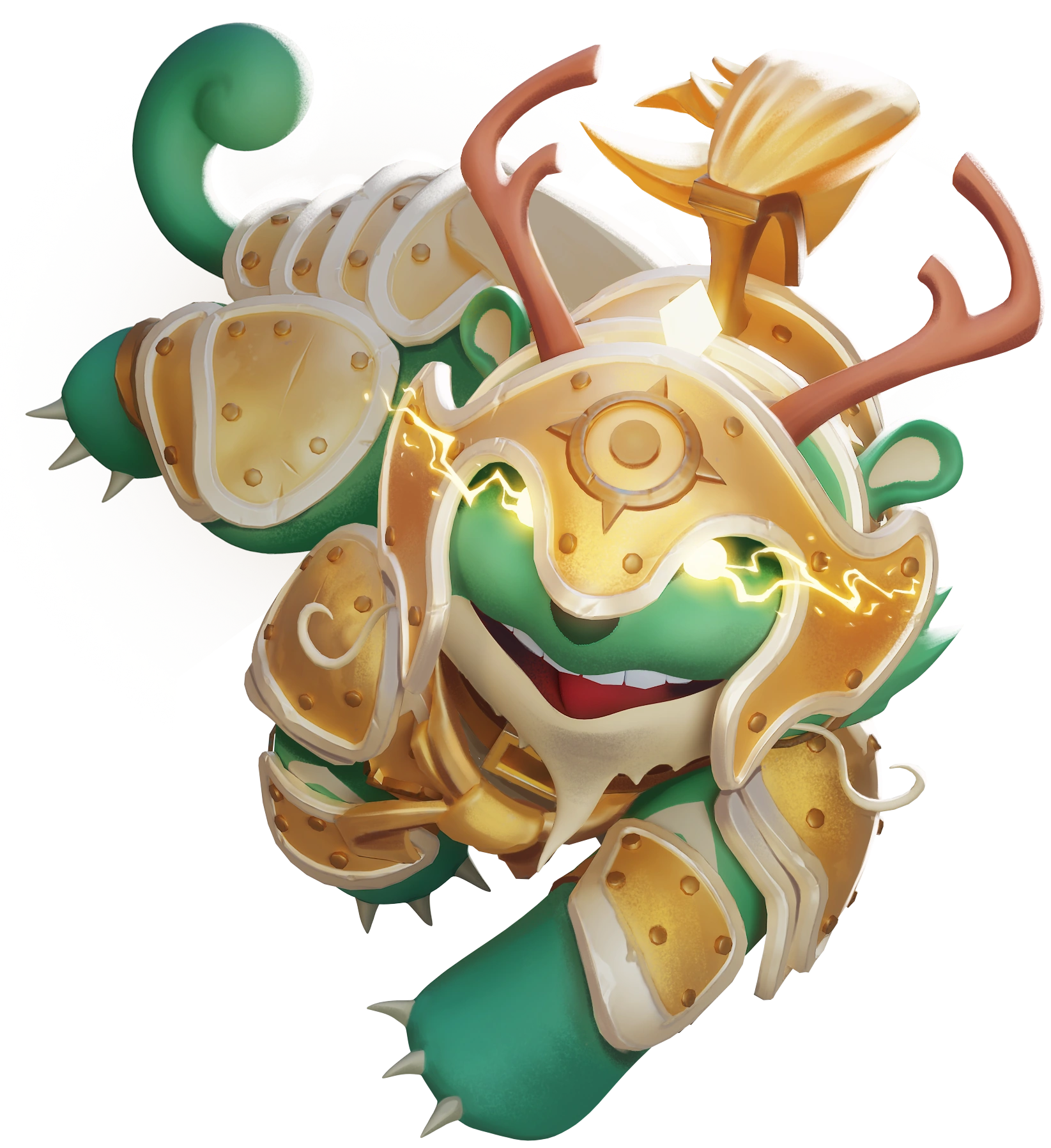 Golden Reindog is a completely original Variant made for Reindog, being a shiny golden version of Battle Reindog. Its shiny eyes strangely mimic those of Shaggy's from the Cinematic "You're With Me!" Trailer.